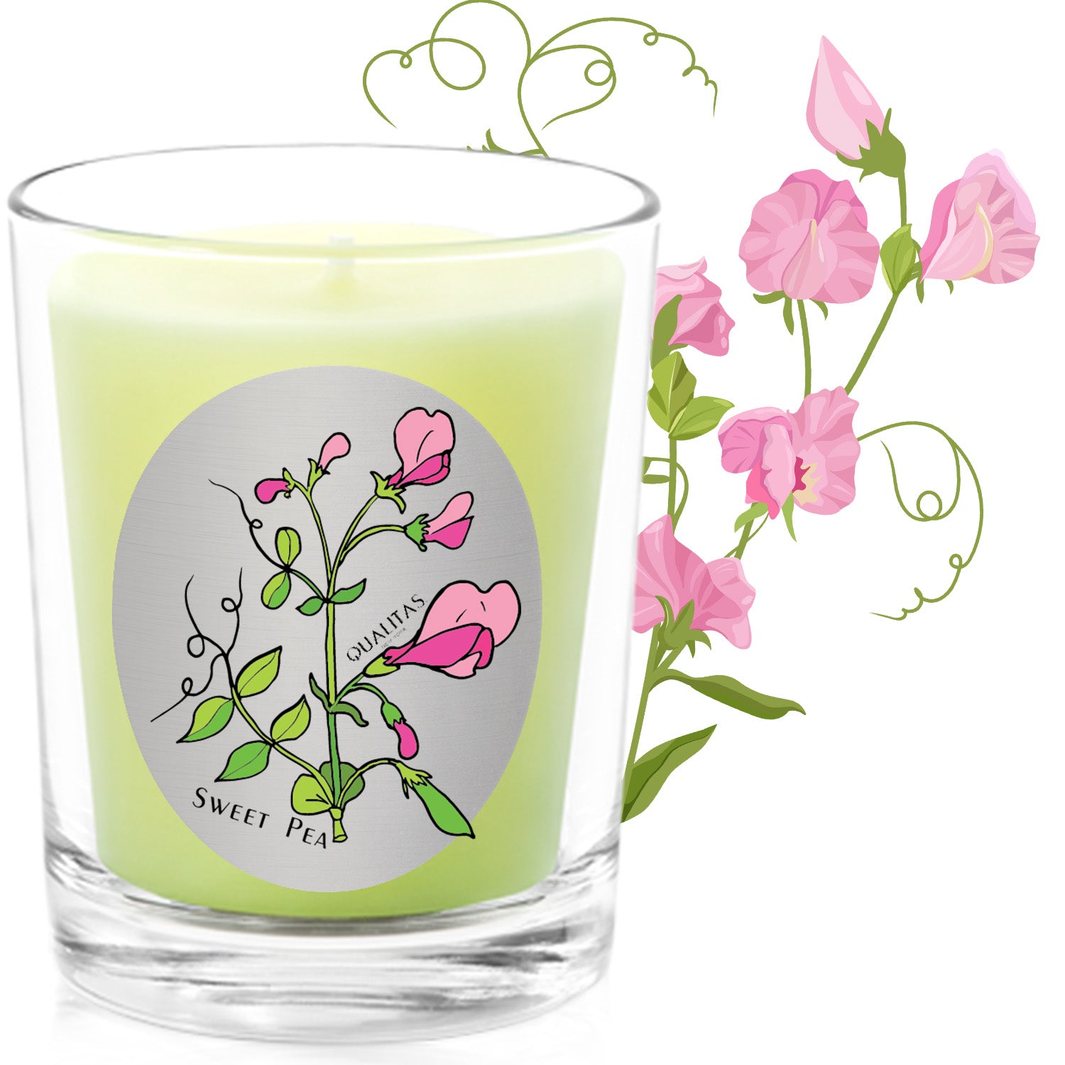 The lovely sweet pea has been cultivated since the 17th century in Southern Europe. Now universally prized by gardeners for its graceful climbing tendrils and vibrant colors ranging from deep purple to white with a pink blush, the sweet pea is named for its softly sweet floral scent, and is an ingredient in spells for luck in love, or for any matter related to Venus. Qualitas has captured the sweet pea's charm in a luxury beeswax candle. Fill it to illuminate any space with the natural sweetness of sweet pea.